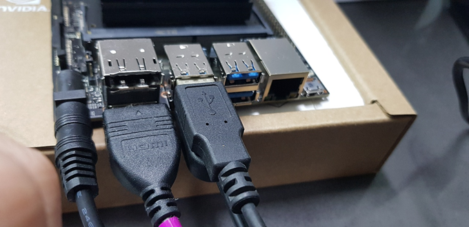 Jetson Nano에 모니터와 마우스, 키보드를 연결하고...