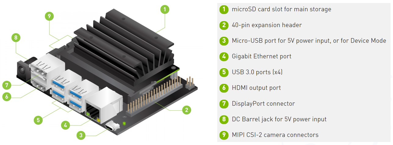 먼저 Jetson Nano의 하드웨어 구성을 살펴보도록 하죠.