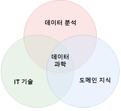 아래의 그림은 데이터 과학이 어떤 기술들이 겹쳐진 영역인지를 간략하게 보여주고 있습니다.