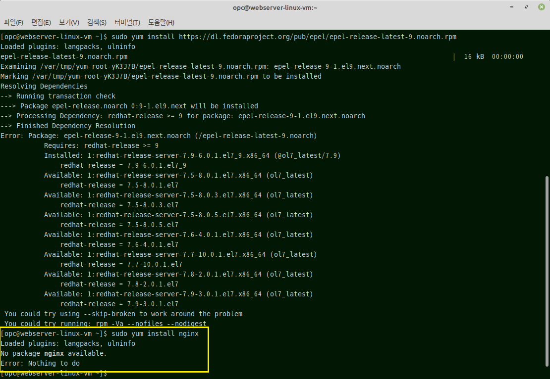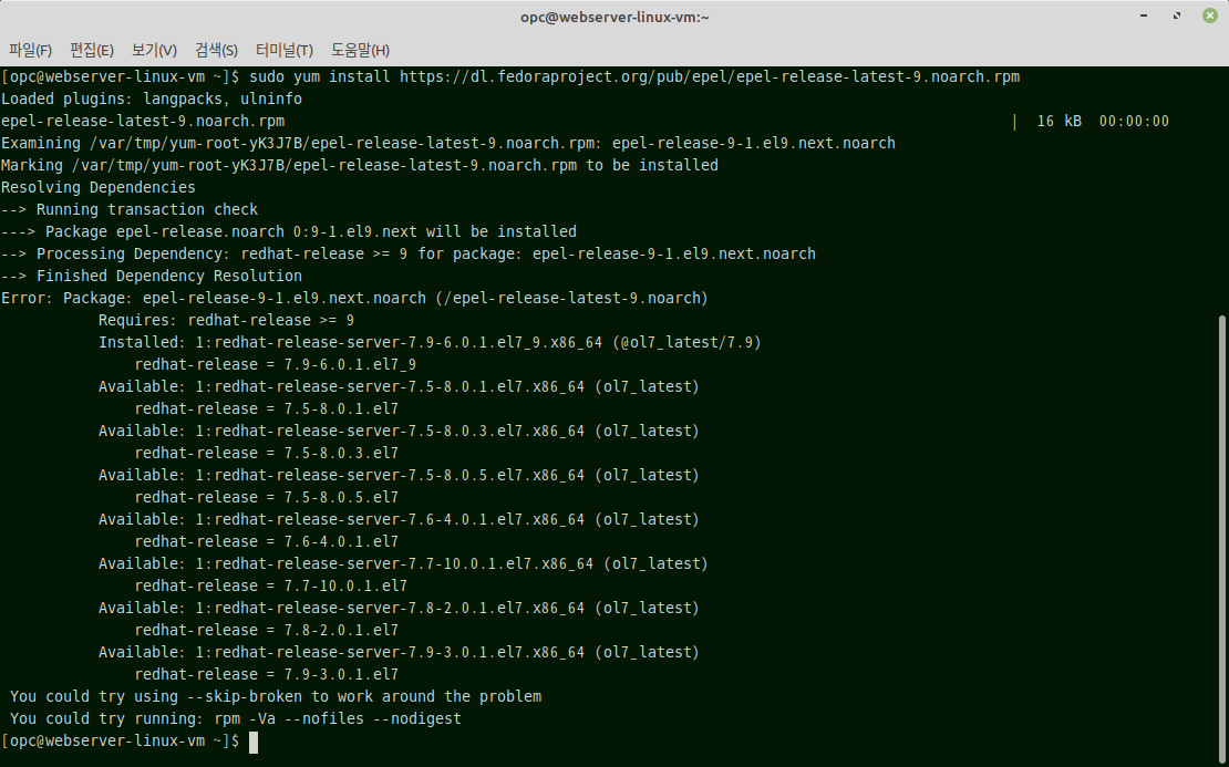 epel-release를 설치하는 것은 아무런 도움이 되지 못했네요.