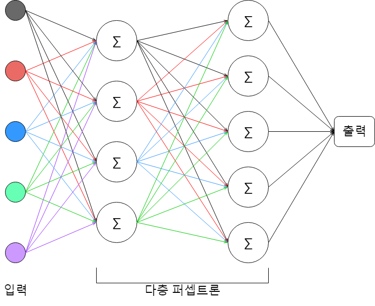요즘 이슈가 되고 있는 딥 러닝 모델은 다층 퍼셉트론에서 가운데에 적용된 층의 수를 아주 많이 증가, 중첩시켜놓은 모델이라고 생각하시면 됩니다.