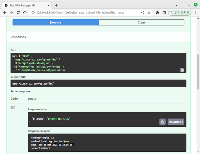 | FastAPI를 기반으로 데이터 파일 전송 및 읽기 (0) | 2023.04.21 |