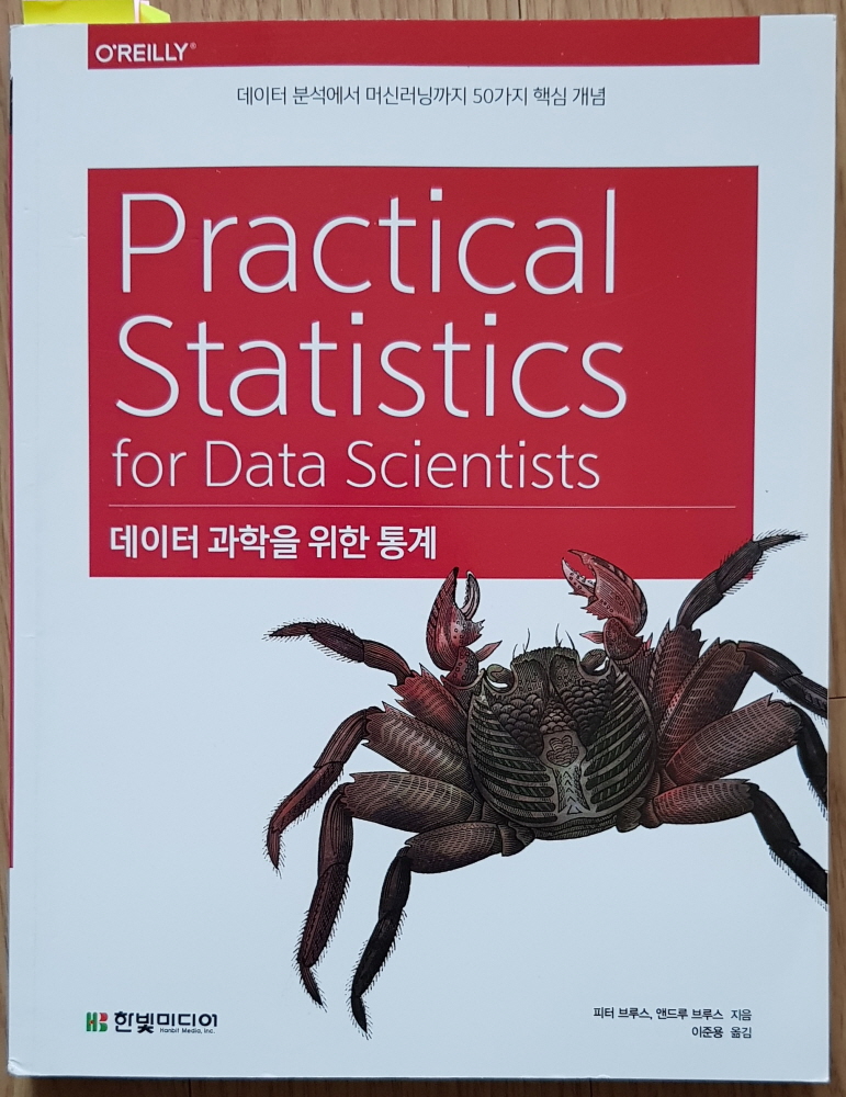 새로 개설한 "실습해보기" 카테고리와 연계하여 진행할 첫번째 도서는 한빛미디어에서 출판한 "데이터 과학을 위한 통계 (피터 브루스, 앤드루 브루스 저 / 이준용 옮김"로 결정하였습니다.