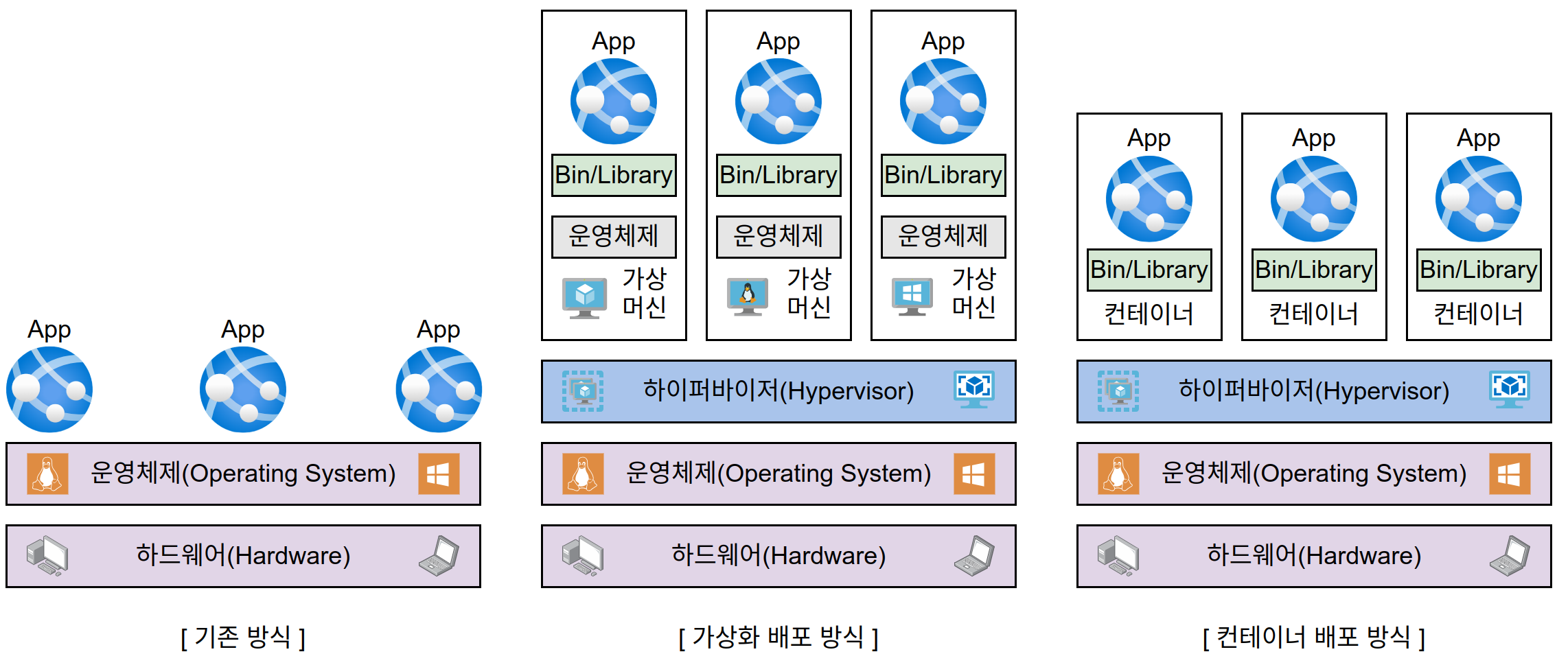 또한 컨테이너 기술은 개발하는 애플리케이션을 격리된 컨테이너에 분산 배치함으로써 기존의 모놀리식 애플리케이션이나 분산 애플리케이션, 서버리스 함수 등을 모두 혼합 사용할 수 있게 지원하고, 심지어 크로스 플랫폼(OS 포함)까지 지원하여 기존의 애플리케이션 및 환경을 다양한 형태로 재구성할 수 있도록 해 줍니다.