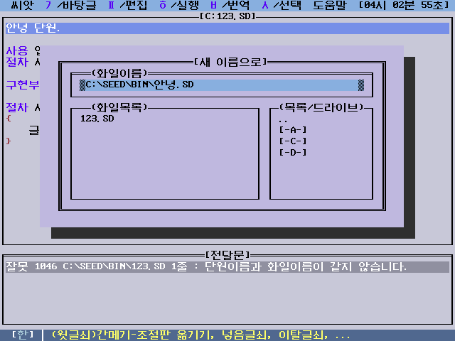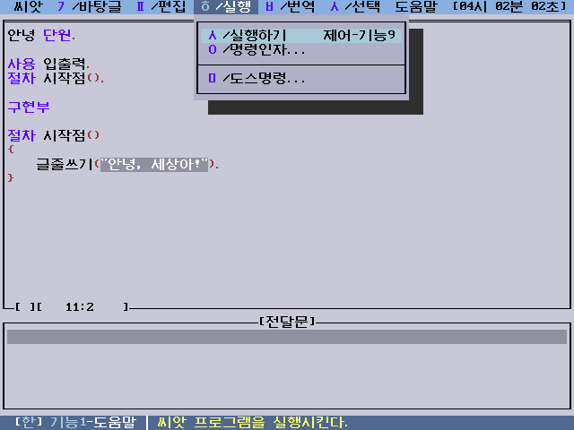 익숙하지 않은 표현에 좀 어색하기도 하지만 30년 전에 개발된 세계 유일의 한글 프로그래밍 언어를 지금 아무런 탈 없이 실행해봤다는 것이... 뭔가 새롭게 느껴지네요.
