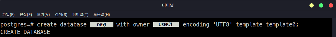 그냥 텅 비어있는 DB를 생성한다면 'Create Database [DB이름]'만 해 주면 되지만 template을 지정해주면 말그대로 템플릿의 내용을 기반으로 DB를 만들어 주는군요.
