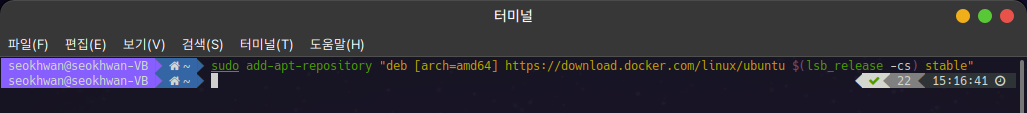 인증키까지 잘 설치되었다면 다음으로 Docker 안정버전을 제공하는 저장소를 추가하도록 합니다.