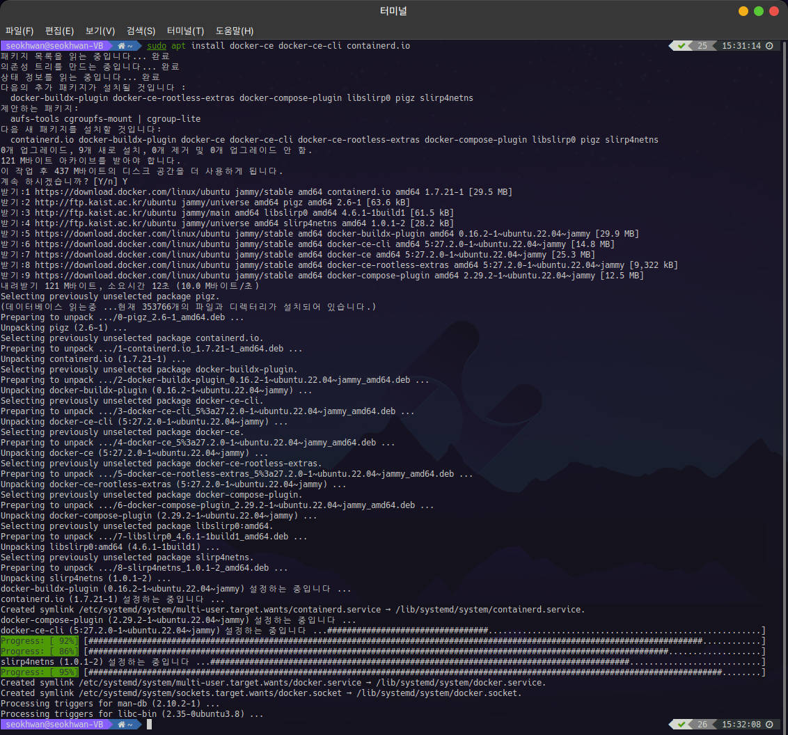 방금 설치한 패키지는 Docker Engine과 Docker CLI, Containerd.io 입니다.