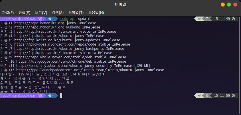 저장소가 설치되었다면 새로운 저장소의 업데이트 정보를 시스템에 반영합니다.
