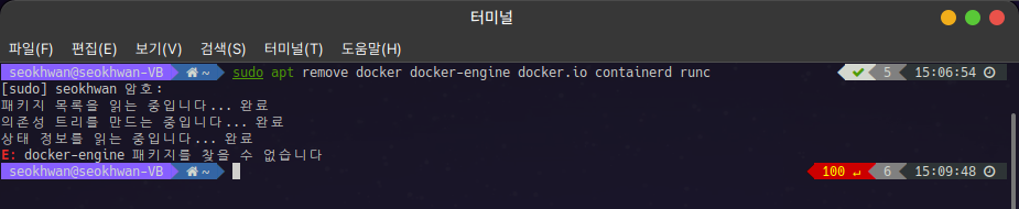 일단 기존에 Docker와 관련된 것들이 설치되어 있거나 삭제하고 남은 파편들이 있을 수 있으니 깔끔하게 지우고 시작합니다.