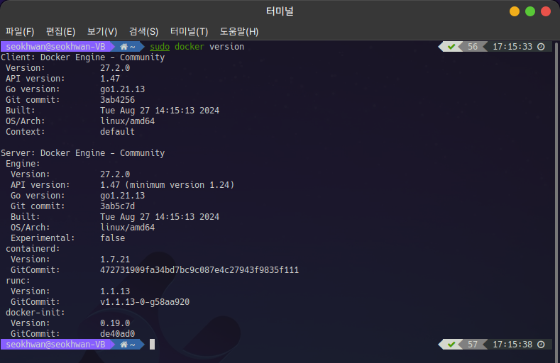 Docker Compose가 잘 설치되었는지 확인하고 나면 Docker 환경의 설치는 완료입니다.