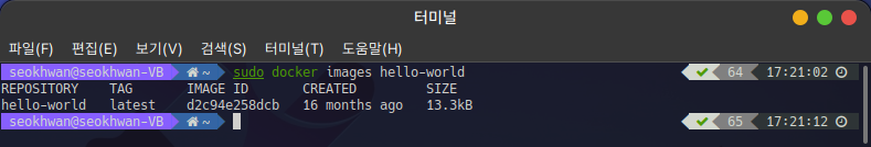 저는 Docker를 Root 권한으로 설치해 버렸기 때문에 sudo 명령어를 계속 사용하고 있습니다만 제대로 사용자 권한으로 설치하셨다면 sudo 명령어를 사용하지 않아도 됩니다.
