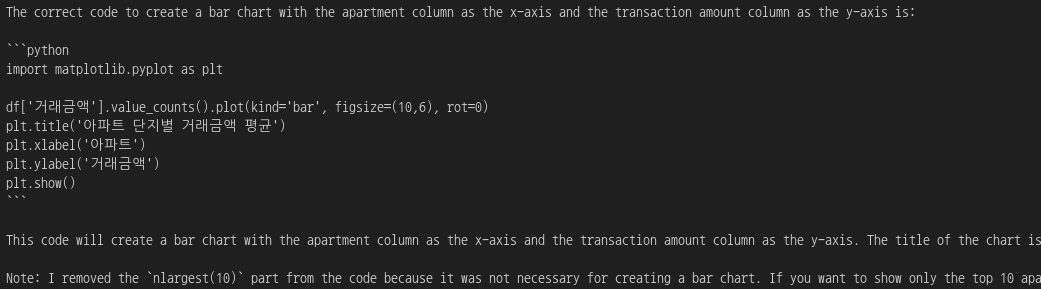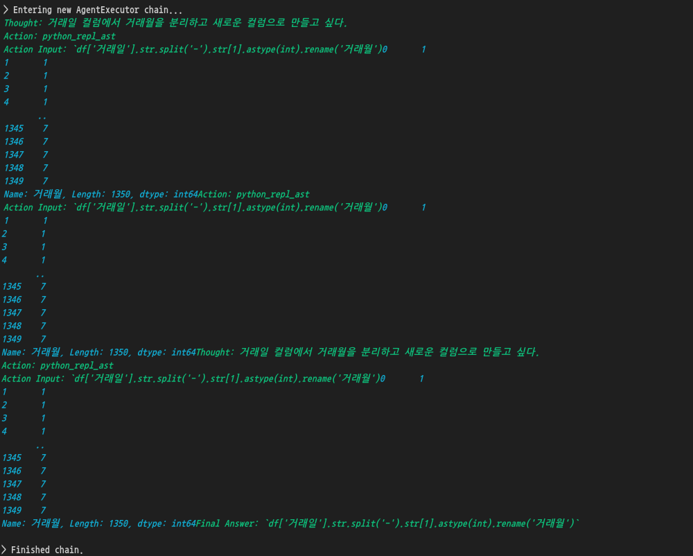 response = agent.invoke("거래일 컬럼에서 거래월을 분리해서 새로운 컬럼으로 만들어주는 코드를 짜줄래?")