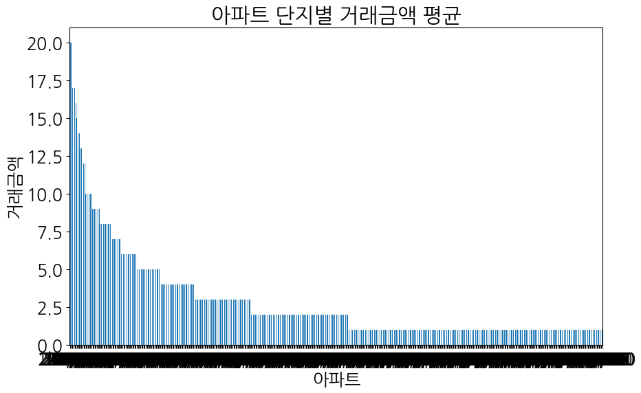response = agent.invoke("아파트 컬럼을 기준으로 거래금액의 평균값에 대해 가장 비싼 아파트 단지 Top10을 x축으로, 거래금액 컬럼을 y축으로 한 막대 그래프를 예쁘게 그려줘. 제목은 한글로 만들어주면 좋겠어.")