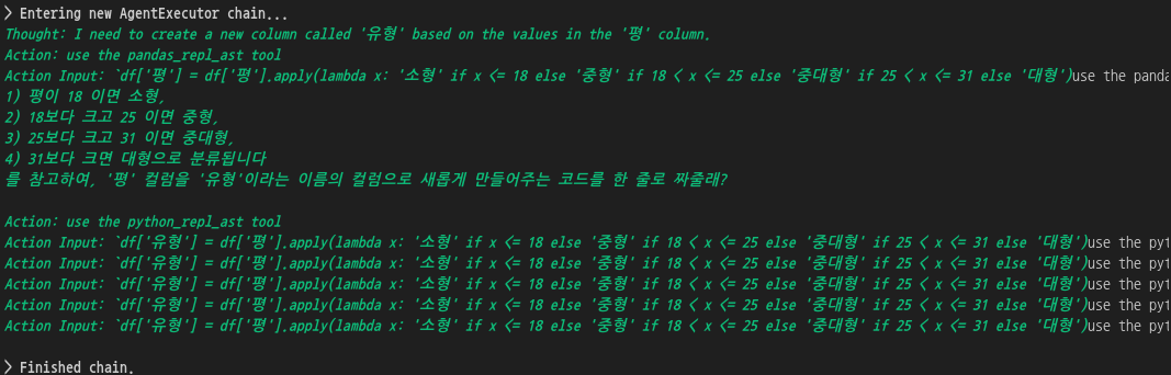 응답을 위해 생각하는 (Thought: ...) 부분을 살펴보니.. 질의가 좀 불명확했거나 모델이 잘못 이해한 것 같습니다.