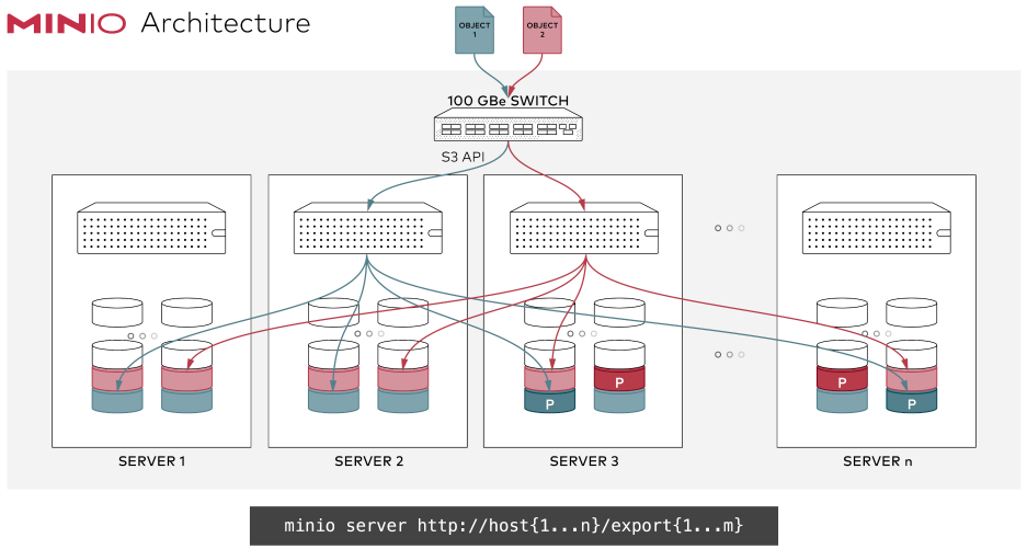 - MinIO는 분산 시스템으로 설계되어 있으며, 다음과 같은 구성요소로 이루어져 있습니다