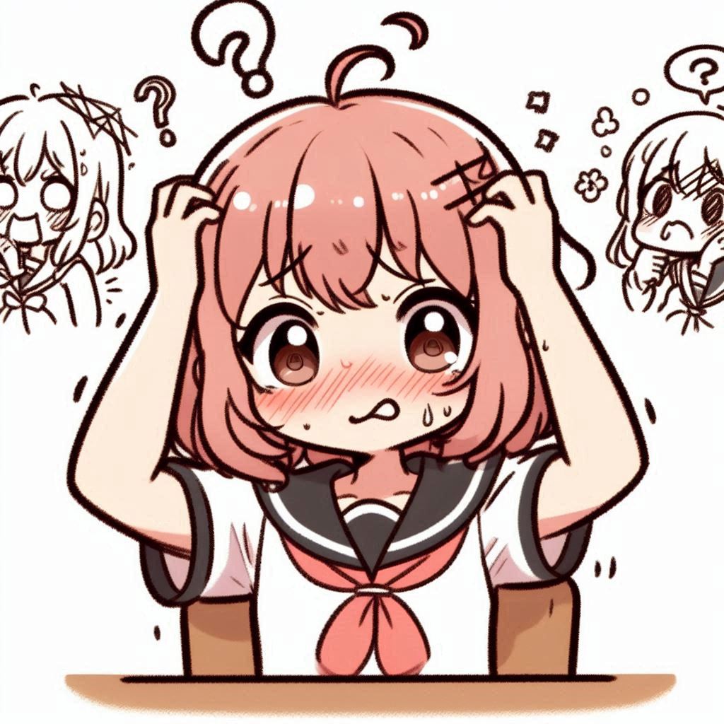 그래서 프롬프트를 "Draw a cute girl who is embarrassed by a ridiculous mistake."와 같이 영어로 바꾸어 보았습니다.