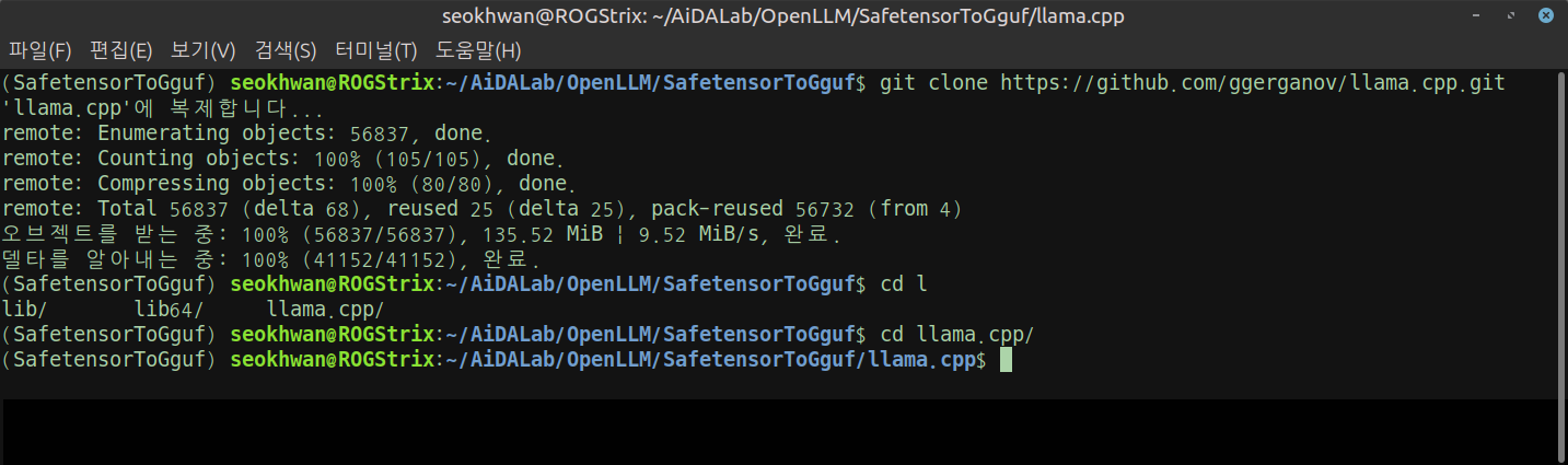 복제한 llama.cpp를 이용해서 파일을 변환하도록 하겠습니다.