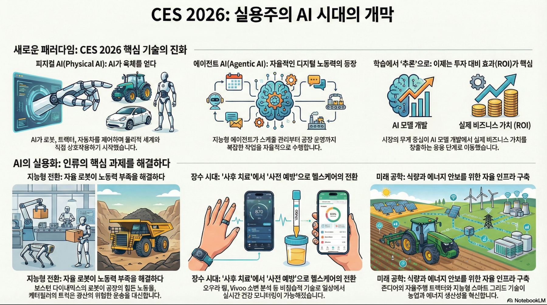 CES2026의 내용을 신동형님이 정리한 467페이지의 보고서를 NotebookLM을 이용하여 중요한 것들만 뽑아서 인포그래픽으로 만들어 보았습니다.