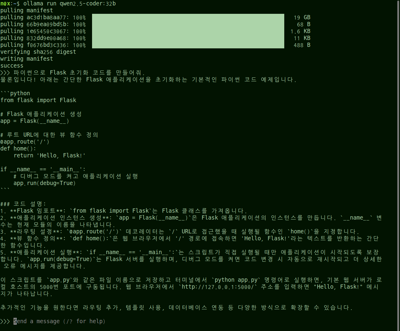 1.2 설치 후, 32GB RAM을 십분 활용하기 위해 32B 모델을 내려받습니다.