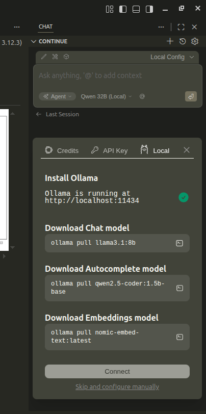 이제 Ollama - Local LLM - VSCode/Continue.dev - Aider 로 구성되는 라인이 완성되었습니다.