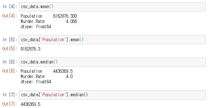 먼저 csv 파일을 읽은 후, R과 마찬가지로 평균, 중간값을 계산해 보도록 하겠습니다.