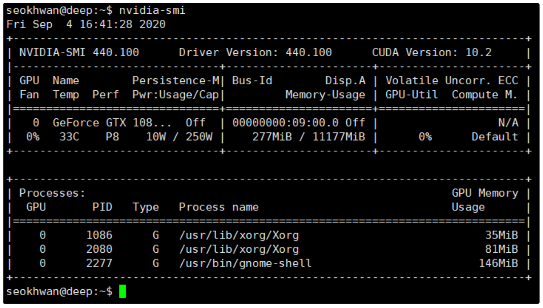 연구실의 시스템에 우분투 20.04를 설치했더니 이미 NVIDIA 드라이버가 설치되어 있군요.