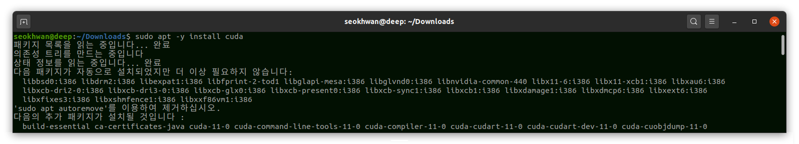 $ sudo apt-get -y install cuda
