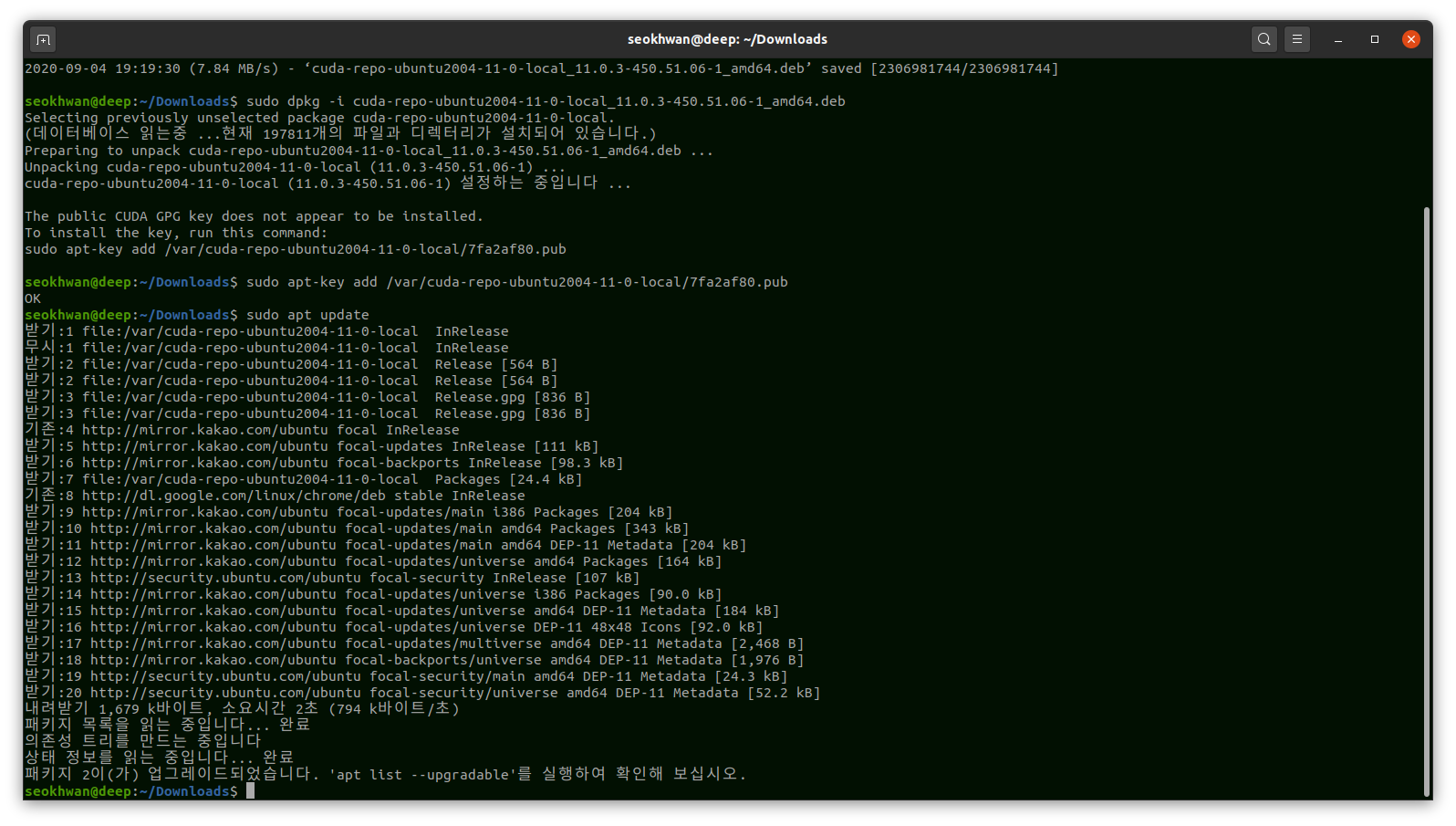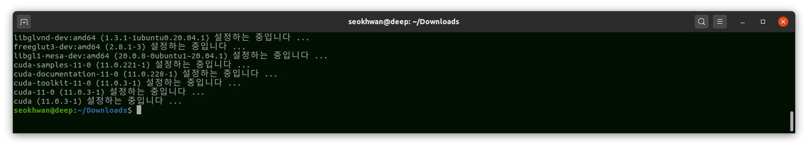 $ sudo dpkg -i cuda-repo-ubuntu2004-11-0-local_11.0.3-450.51.06-1_amd64.deb