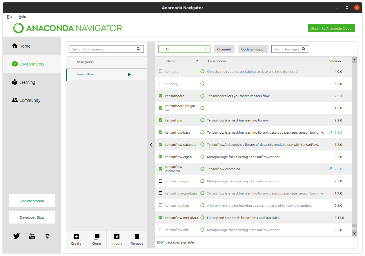 먼저 Anaconda-Navigator를 이용하여 텐서플로우를 설치한 가상 환경을 만들어보겠습니다.
