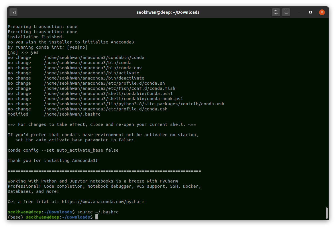 $ bash ./Anaconda3-2020.02-Linux-x86_64.sh