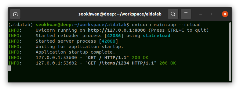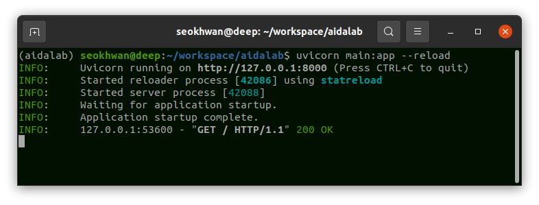 FastAPI 서버와 Uvicorn이 잘 동작하고 있네요.