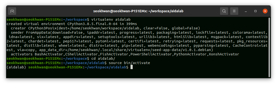 먼저 우리가 작업해야 할 가상환경을 만들고 활성화 해봅시다.