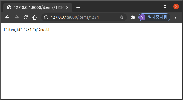 다음으로 "/items/{item_id}" 경로로 접근해 보도록 하겠습니다.