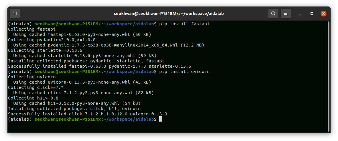 FastAPI와 함께 Uvicorn 모듈도 설치하도록 합니다.